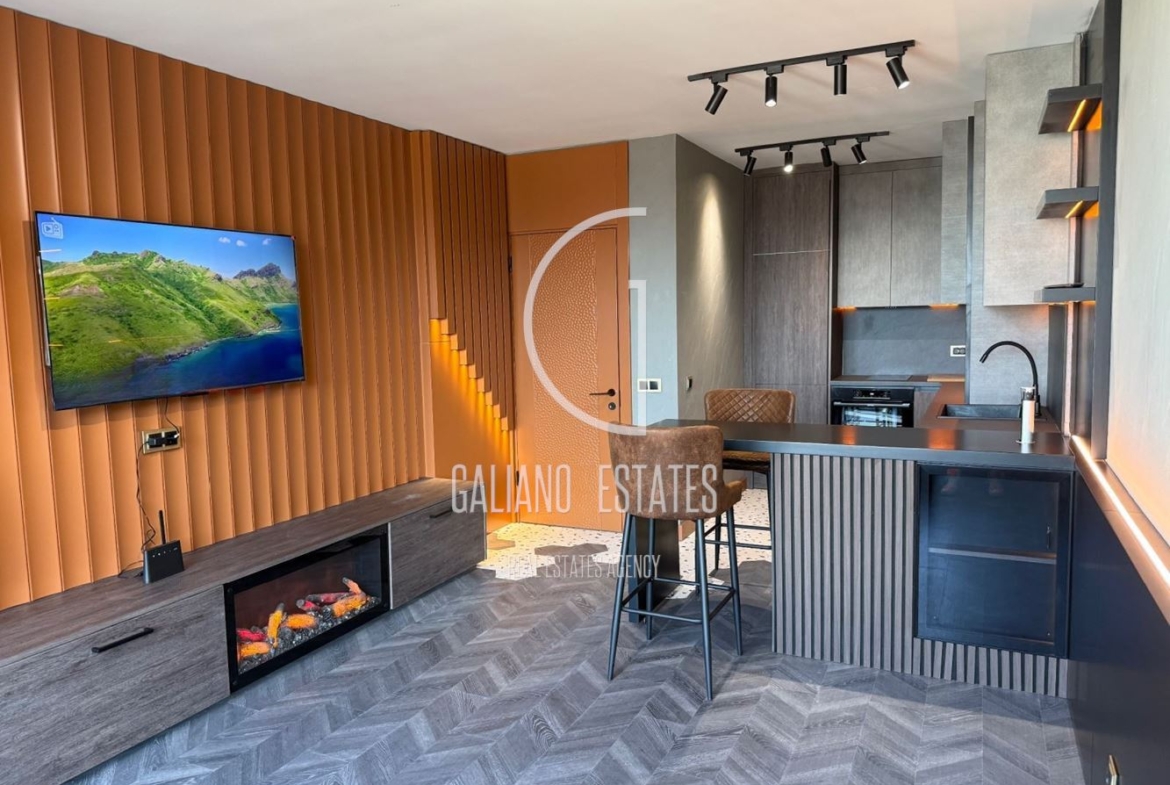 Galiano Estates presents a stylish and exceptionally functional one-bedroom apartment, located in the high-class South End complex on Cherni Vrah Blvd. The property is internal, with a southwest exposure, which provides plenty of natural light and coziness throughout the day. The apartment features a panoramic terrace with an impressive view of Vitosha and the green courtyards of the complex. The building has access control, security, and luxurious common areas.