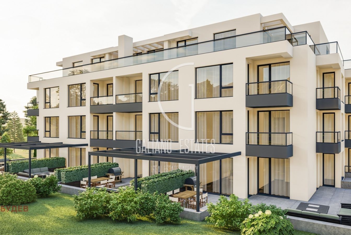 Galiano Estates is pleased to present a two-room apartment with a VIEW OF SOFIA in a new, small boutique building with four floors. The apartment consists of a living room with a kitchenette, a bedroom, a bathroom with a toilet, a utility room or a walk-in closet, and a terrace.