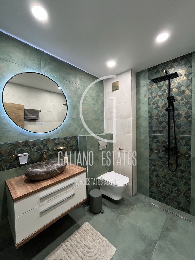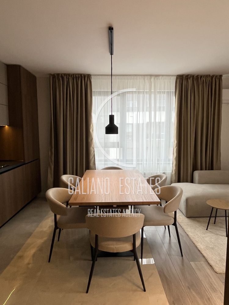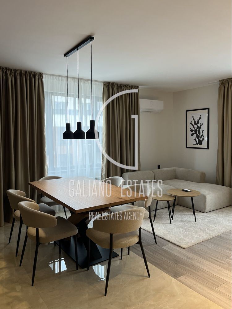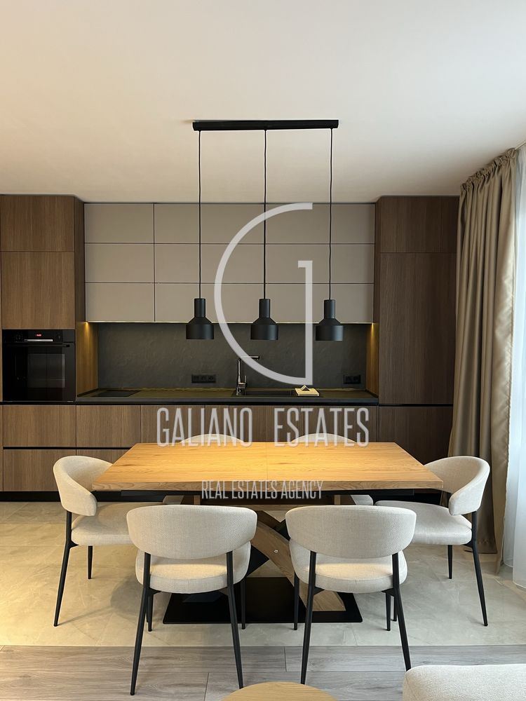 The residence impresses with its designer touch, cozy atmosphere, and beautifully designed spaces, combining functionality and style. The apartment is fully furnished and equipped with all necessary appliances and furniture, ensuring comfort and convenience in everyday life. Heating is provided by air conditioners. The property offers a 22 sq.m. underground garage in the same building at a price of 100 euros.