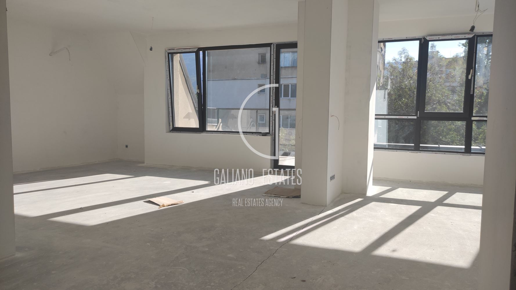 Galiano Estates presents a four-room brick apartment with an area of 169 sq.m located in the Strelbishte district. The apartment has an unconventional but functional layout and minimal corridor space. The apartment is offered with putty and screed and consists of a large living room that can be divided, a dining room and a kitchen, a bedroom, a second bedroom with an internal wardrobe, a bathroom with a toilet, a separate bathroom, a utility room and four terraces. The heating is from the central heating system and there are air conditioners. The property also offers a parking space for two cars, price by agreement. The location is excellent - meters from public transport stops, close to schools, kindergartens, shops and green areas. Within walking distance of South Park, with quick and easy access to the Ring Road.