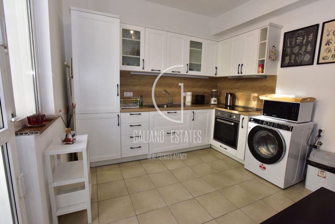 Galiano Estates presents a spacious, fully furnished three-room apartment in the area of Vitosha Blvd. The apartment is bright, quiet, and warm with an area of 80 m2 on the second floor above the ground floor.