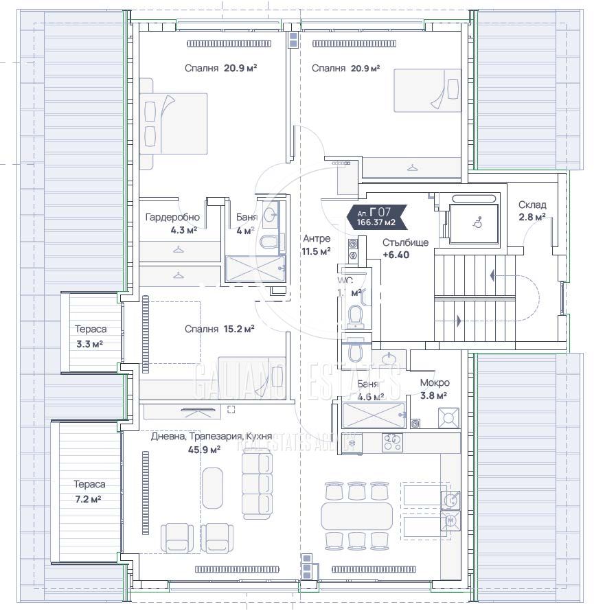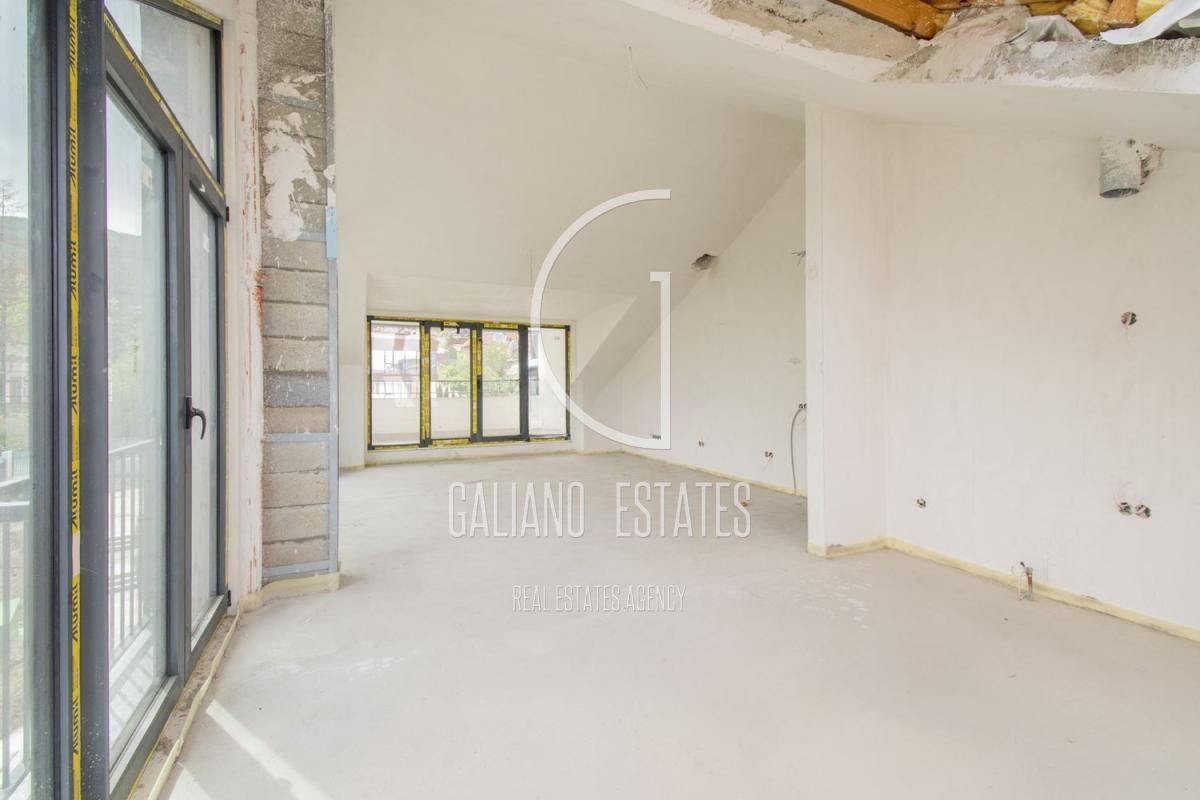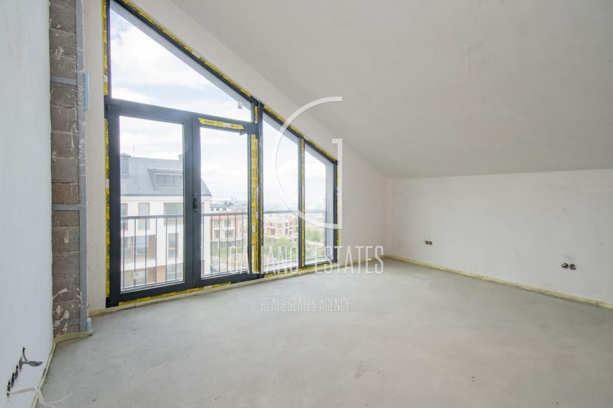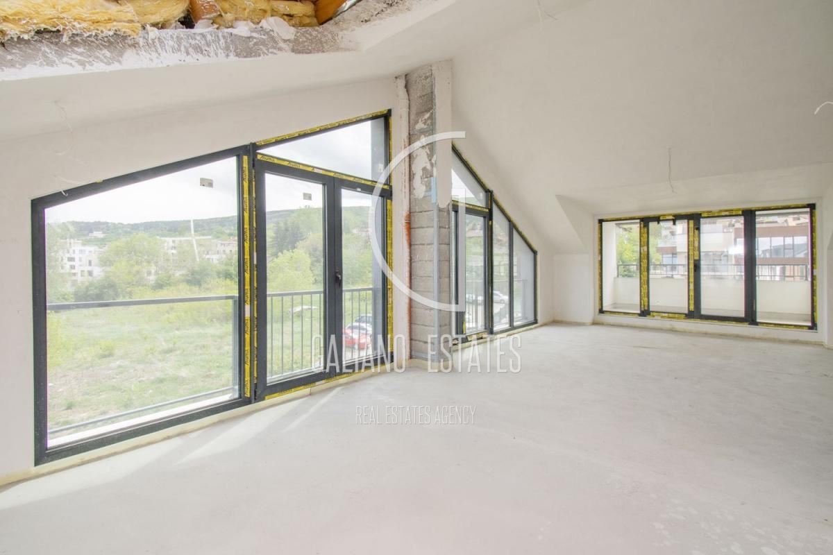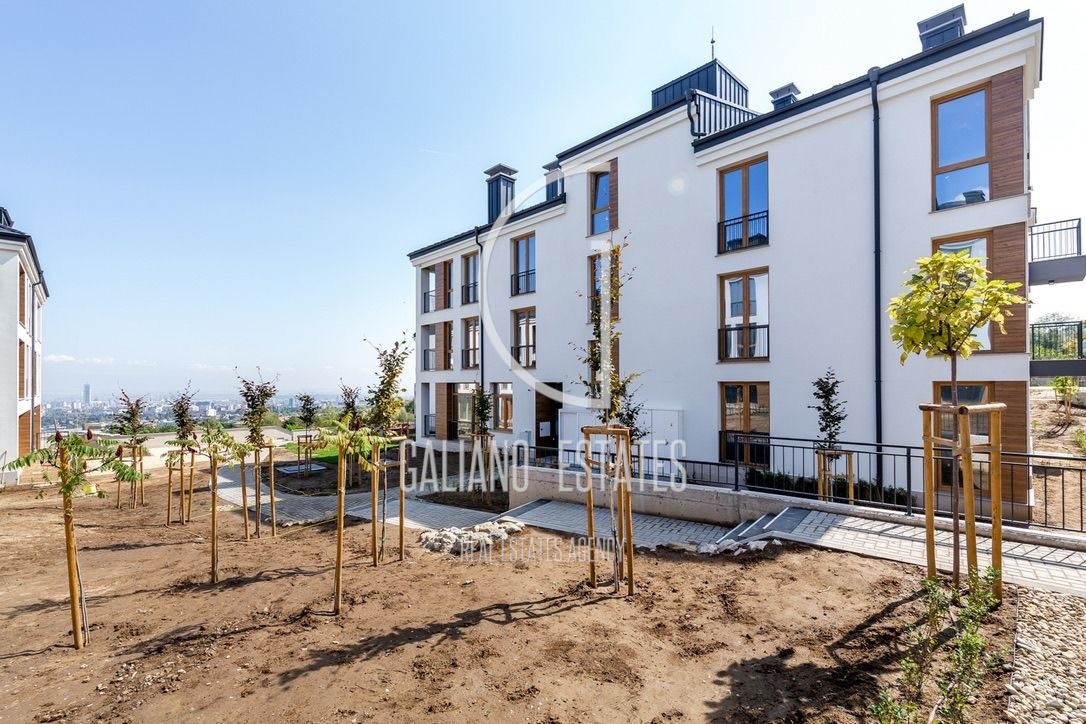 Galiano Estates offers you an impressive apartment, offering spacious rooms, high ceilings, practical layout and amazing views of the mountain and the city. The apartment is located on the top /fourth/ floor, in one of a total of four buildings. The complex has 34 apartments, with a spacious courtyard and recreation areas. High-class construction, with the highest class of materials used. The building has Act 16 from 2024. Garages can be purchased on the basement level of the building, at an additional price. The stated price is without VAT. We also offer other apartments for sale in the building. Layout: entrance hall, living room with dining area and kitchen, master bedroom with walk-in closet and bathroom, two bedrooms, utility room, bathroom, separate toilet, two terraces. Offer 2395