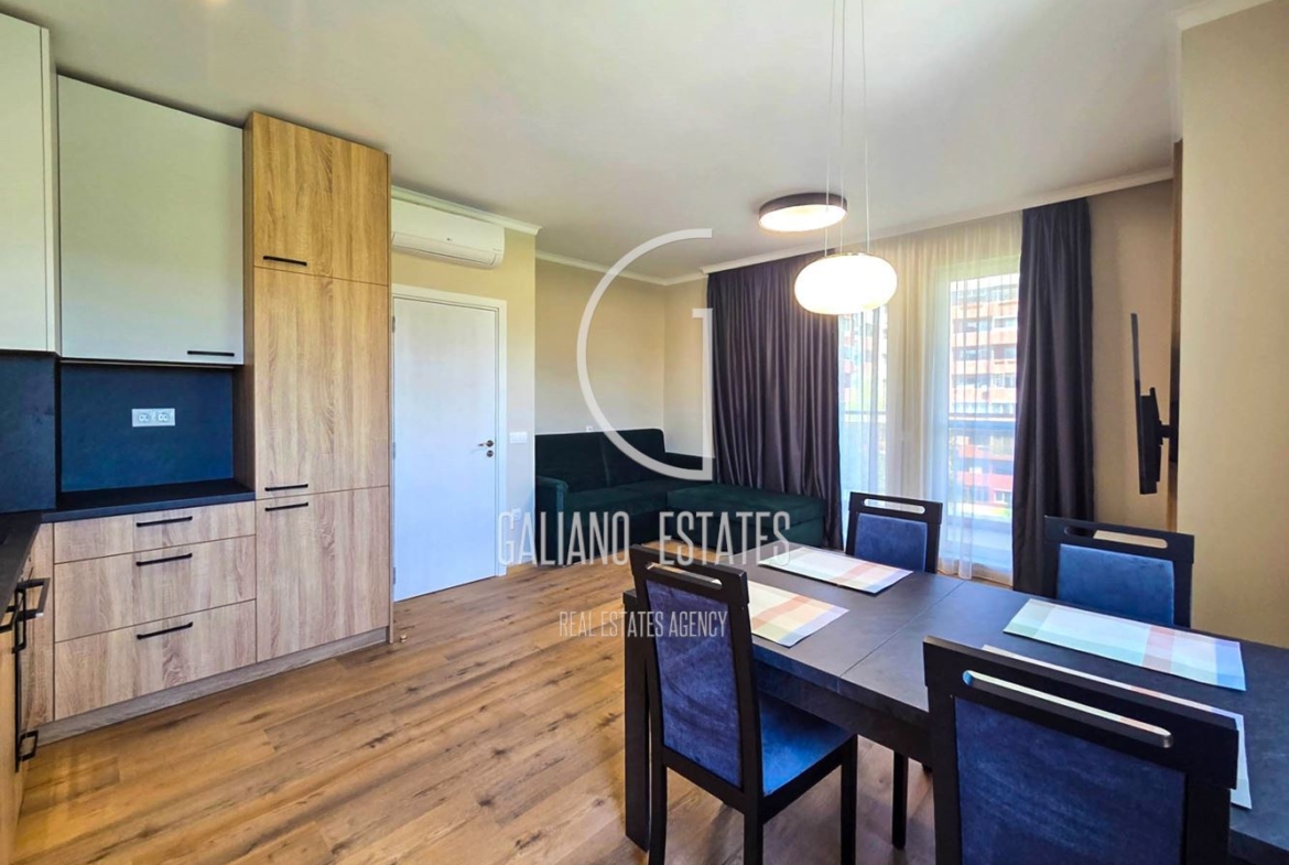 Ексклузивно! Galiano Estates има удоволствието да ви представи чисто нов, стилно обзаведен двустаен апартамент, разположен в ж.к. „Сухата река“. Имотът се намира на отлична локация – в близост до метростанция, спирки на градски транспорт, детски градини, училища и магазини.