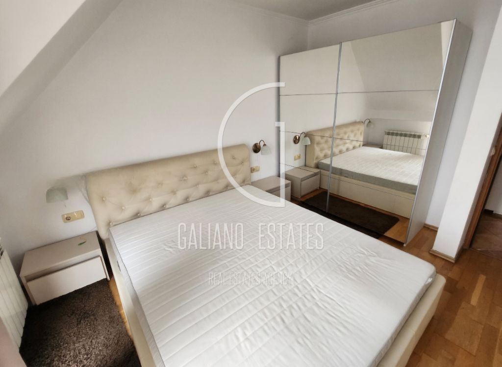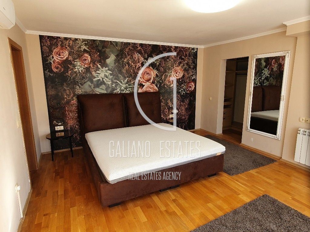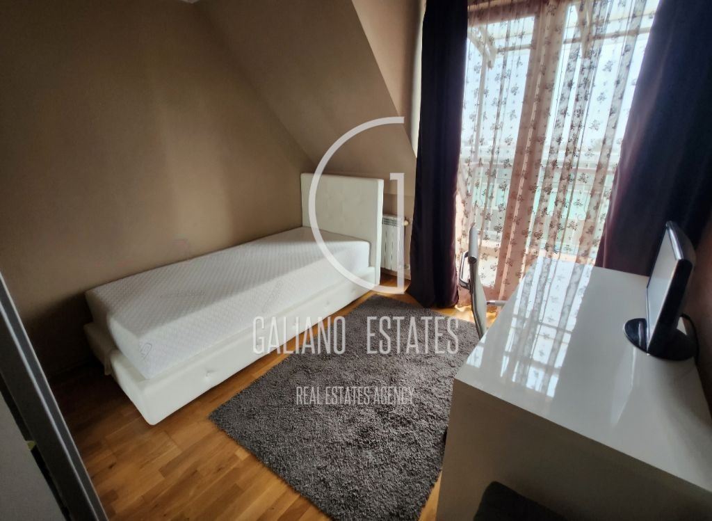 Galiano Estates Ви представя панорамен четиристаен мезонет в затворен комплекс само на 200 м. от Околовръстния път с бърз достъп до целия град, а в същото време с усещане за спокойствие и тишина. Комплекса разполага с красива градина и луксозни общи части: стълбище и первази от италиански гранит и словенска дървена дограма със стъклопакети. Мезонета се състои от: първо ниво – входно антре, хол с трапезария и кухня, тераса към хола с изглед към Витоша, две спални с тераса, баня с тоалетна, второ ниво – втора голяма спалня с баня с тоалетна , дрешник и голяма тераса с изглед към Витоша. Към апартамента има и голямо и високо мазе. Оферта № 6033