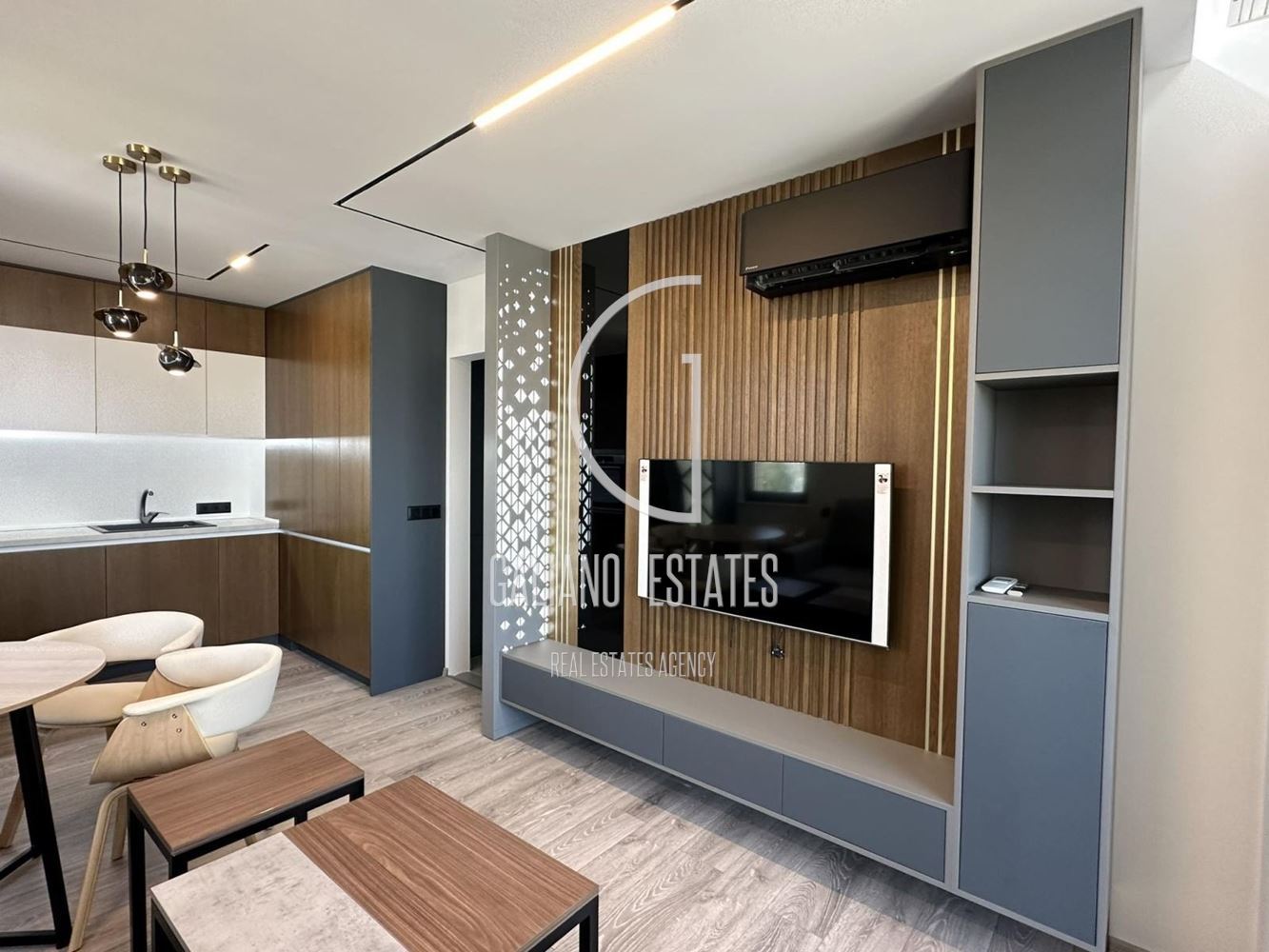 Galiano Estate има удоволствието да Ви представи дизайнерски обзаведен двустаен апартамент на топ локация до МОЛ Парадайс. Апартаментът съчетава модерен стил, висококачествени материали и максимален комфорт. Разпределение: Всекидневна с кухненски бокс и трапезария, спалня , баня с тоалетна, антре, складово помещение и тераса . Обзавеждане: изцяло по индивидуален проект мебели по поръчка, най висок клас електроуреди, дизайнерско осветление и скрито LED осветление. Климатизация във всяка стая с висок клас климатици, шумоизолация, югозападно изложение и големи френски прозорци за максимална светлина и гледка.