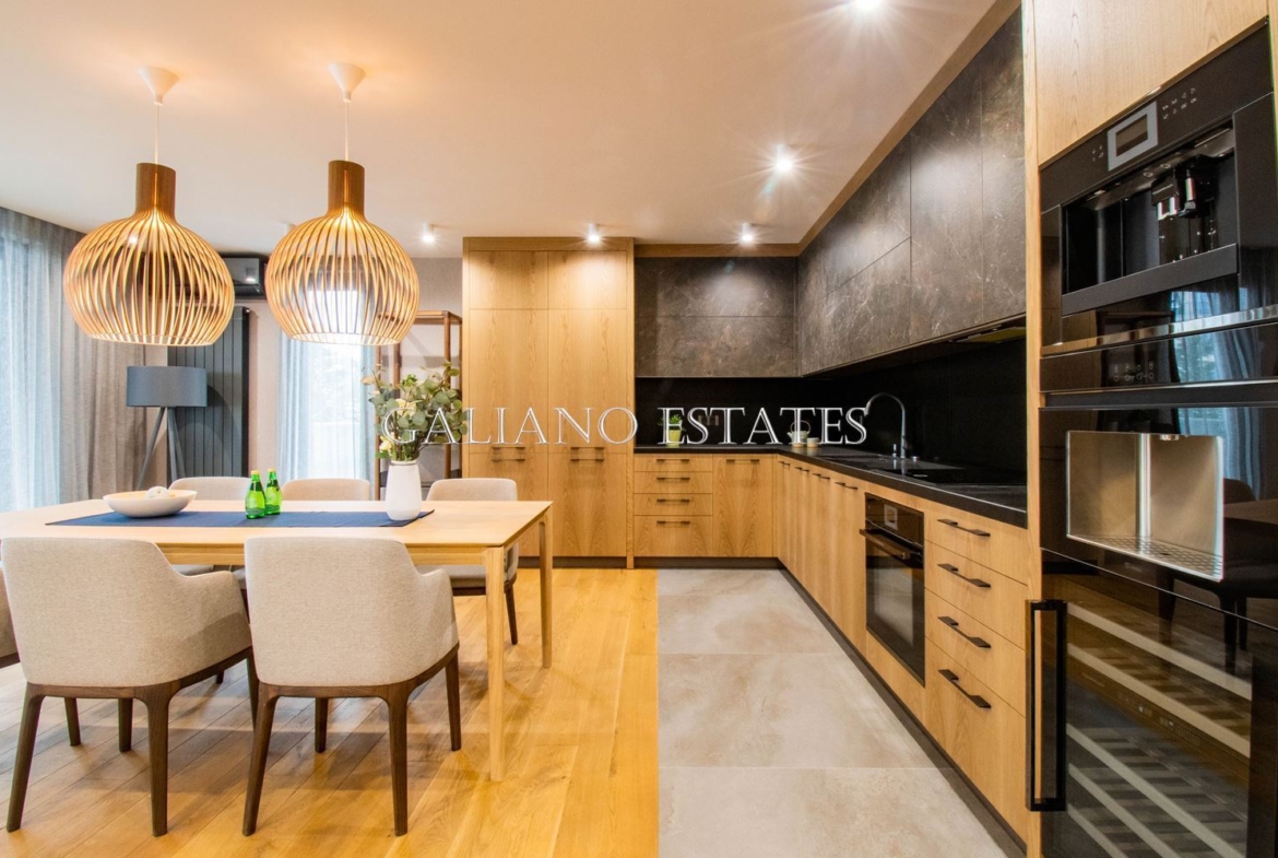 Galiano Estates има удоволствието да ви представи луксозен, напълно обзаведен апартамент с обща площ 176 кв. м (160 кв. м чиста застроена площ), разположен в затворен комплекс 203 Residence, над Residential Park Sofia.