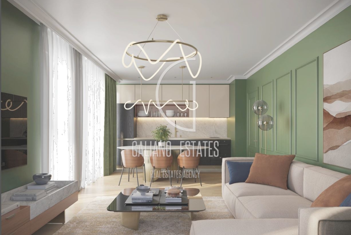 БЕЗ КОМИСИОНА! Galiano Estates има удоволствието да Ви представи тристаен апартамент в самостоятелна нова жилищна сграда с висока енергийна ефективност. Жилището е с функционално разпределение, включващо дневна с кухненски бокс, две спални, две бани с тоалетни и тераса. Помещенията са светли и просторни, с големи витрини и светла височина 2,67 м. Западно изложение.