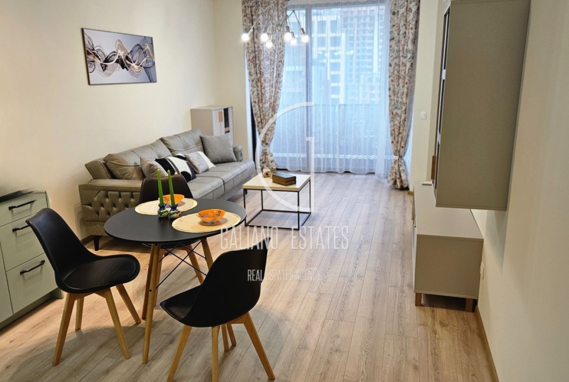 Galiano Estates Ви представя изключително елегантен и напълно обзаведен двустаен апартамент в кв. Кръстова вада. Имота предлага функционално разпределение и комфорт. Впечатлява с внимателно подбран интериор, висок клас материали и модерно обзавеждане. Архитектурното изпълнение е на изключително високо ниво, което допълнително подчертава премиум характера на имота. Апартаментът е с площ 66 кв. м, разположен на четвърти етаж и има следното разпределение: просторна дневна зона, напълно оборудвана кухня с висок клас електроуреди, комфортна спалня, баня с с тоалетна, сервизно помещение с пералня и сушилня. Апартамента има голяма тераса, достъпна от двете стаи, идеално място за отдих и релакс. Отоплението на: Газово котле, осигуряващо отопление и топла вода и климатици във всяка стая.