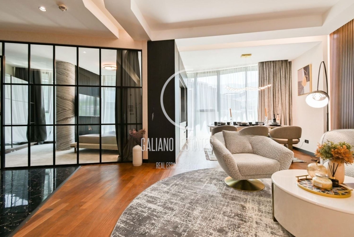 Galiano Estates има удоволствието да ви представи тристаен апартамент в сграда със стъклена фасада, всички апартаменти в която са с южно изложение, което ги прави изключително слънчеви и светли. С площ от 122 кв.м. и разположен на четвърти етаж в девететажна сграда, този имот предлага приятно излъчване и комфорт. Апартаментът е обзаведен и разполага с хол с кухненски бокс и трапезария, две спални, две бани със санитарен възел. На всеки етаж има само по три апартамента, което осигурява максимално лично пространство и уединение. Комплексът предлага външни паркоместа под наем на допълнителна цена, 24-часов контрол на достъпа и видеонаблюдение, модерен фитнес център и луксозен СПА център, изискан ресторант. Рецепцията с 24-часово обслужване допринася за поддържането на перфектна и безопасна жилищна среда. Посочената цена е включено ДДС. Оферта № 6461