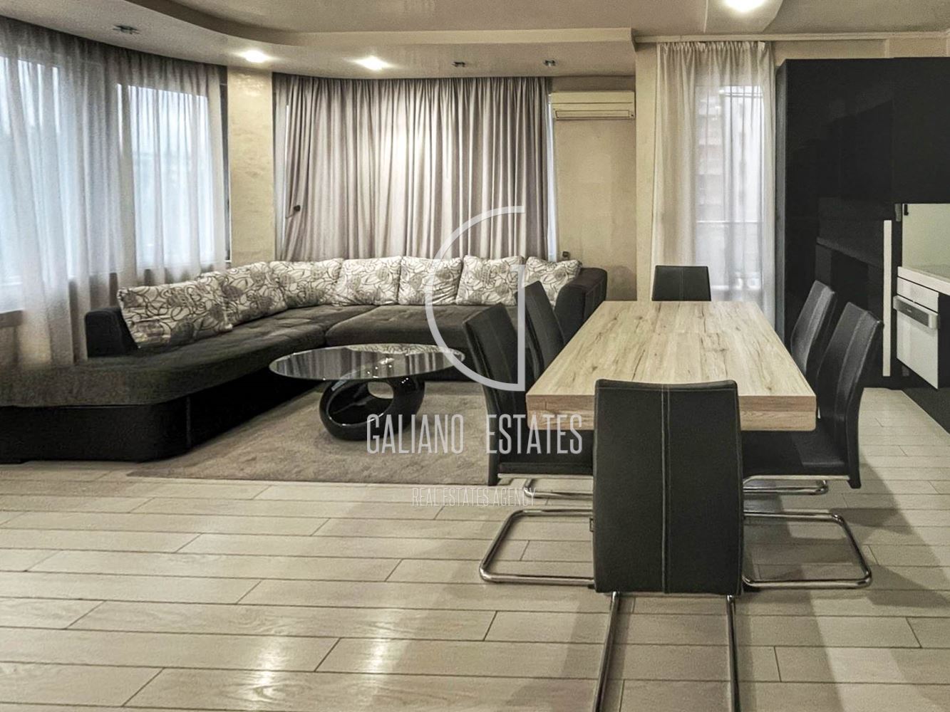 Galiano Estates Ви представя просторен и добре обзаведен тристаен апартамент в поддържана сграда, с асансьор и отлична локация. Апартаментът е с югоизточно изложение, топъл с функционално разпределение и включва: светъл хол ,луксозно изпълнена кухня с всички необходими уреди – печка, пералня, хладилник, две спални с дограма и добра шумоизолация, баня със санитарен възел и тераса. Централно отопление, климатици за всяко помещение и СОТ. Отлична инфраструктура и бърз достъп до градски транспорт, магазини и заведения. Цената е с включено ДДС. Оферта № 5914